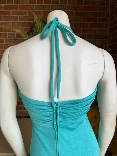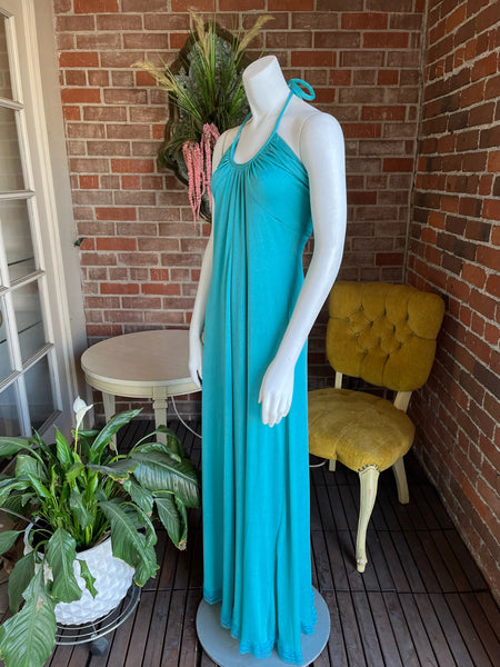 Vintage 1970s Turquoise Halter Top Maxi Dress